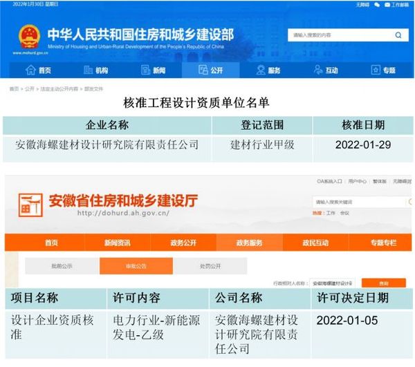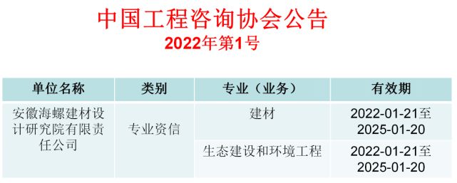 • 海螺設計院成功取得建材行業甲級等多項資質